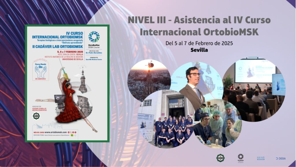 Nivel III – V Curso Internacional OrtoBioMSK (Sevilla): del 5 al 7 de febrero de 2026, incluyendo talleres prácticos, networking y presentación de trabajos científicos.